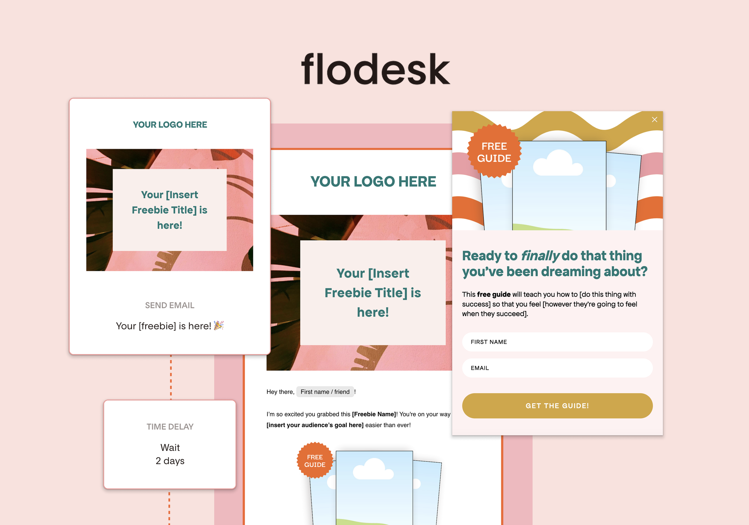 The Flodesk Freebie Toolkit comes with pre-built forms of all three kinds (embedded, popup, and full-page) so you can skip the setup stress!