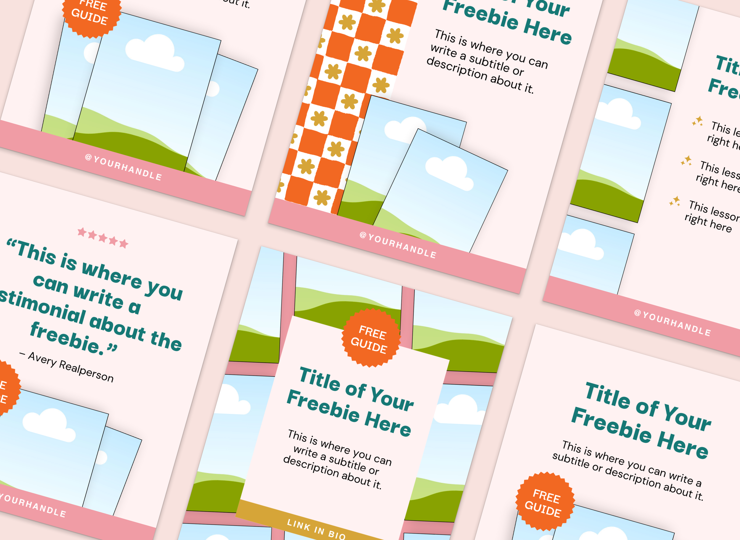 The Flodesk Freebie Toolkit has an optional Canva promo kit add-on! It includes Instagram posts, stories, and Pinterest pins to make promoting your freebie quick and easy.