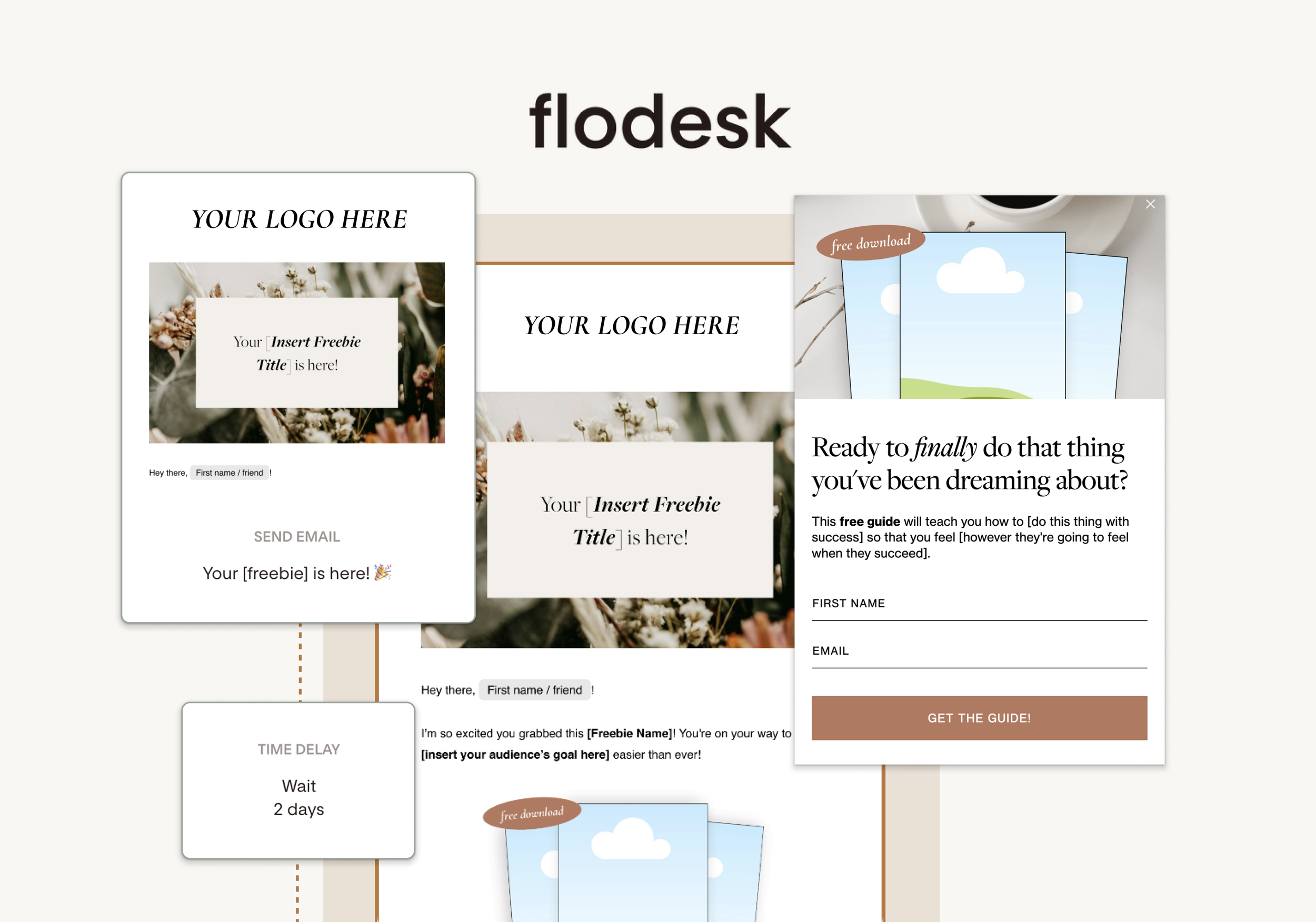 The Flodesk Freebie Toolkit has a pre-built 3-email freebie delivery workflow, so all you have to do is fill in the details and let it run automatically.