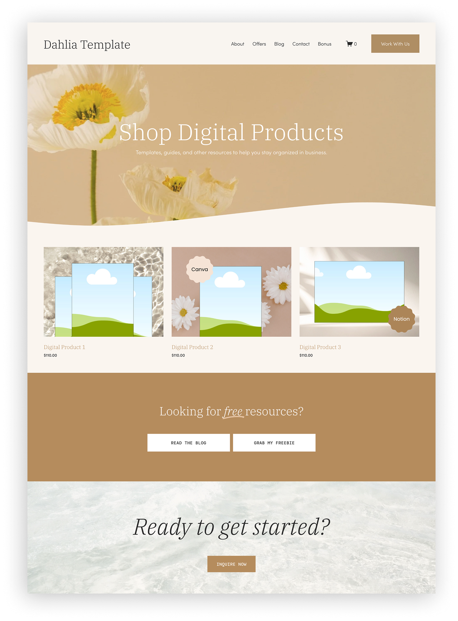 All templates are built with the exact same StoryBrand-inspired layout, so all you have to do is pick the style that best matches your brand. We shop by vibes here. 😎