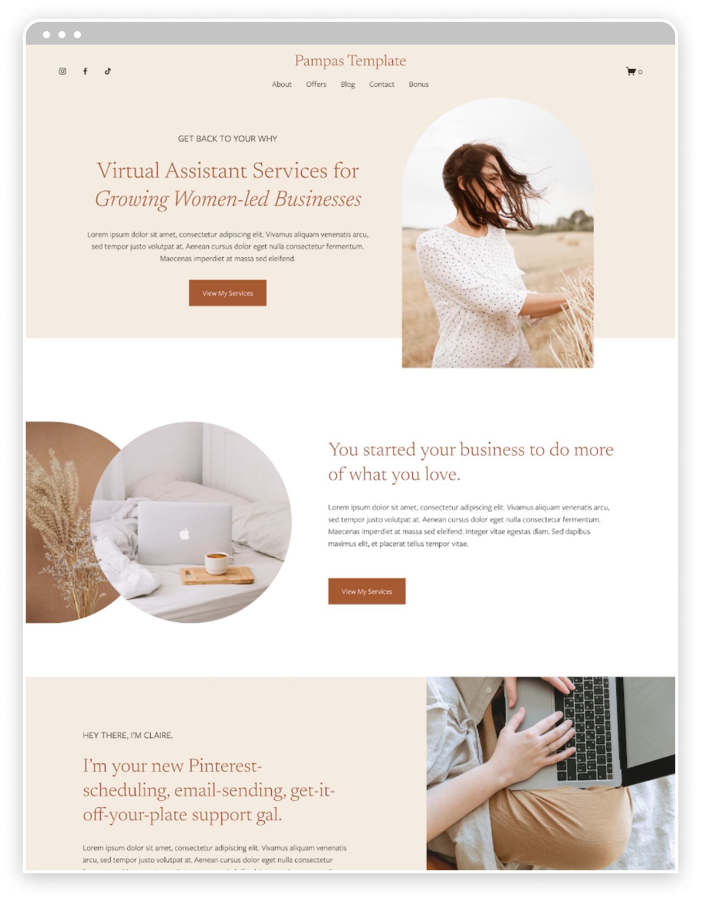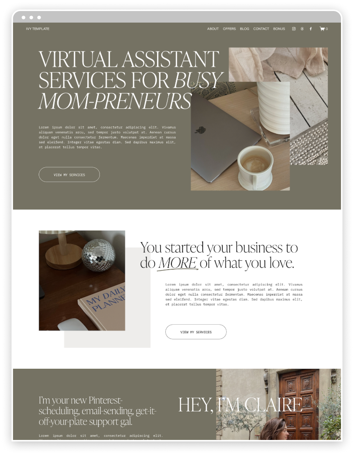 Every template in my shop is built on the same StoryBrand-inspired layout I use for my custom $3,000+ websites, strategically designed to turn visitors into inquiries. The only difference between them? The aesthetic. So go ahead, shop by vibes. It’s not only allowed – it’s encouraged here. You really can’t go wrong, because the bones are all the same.
